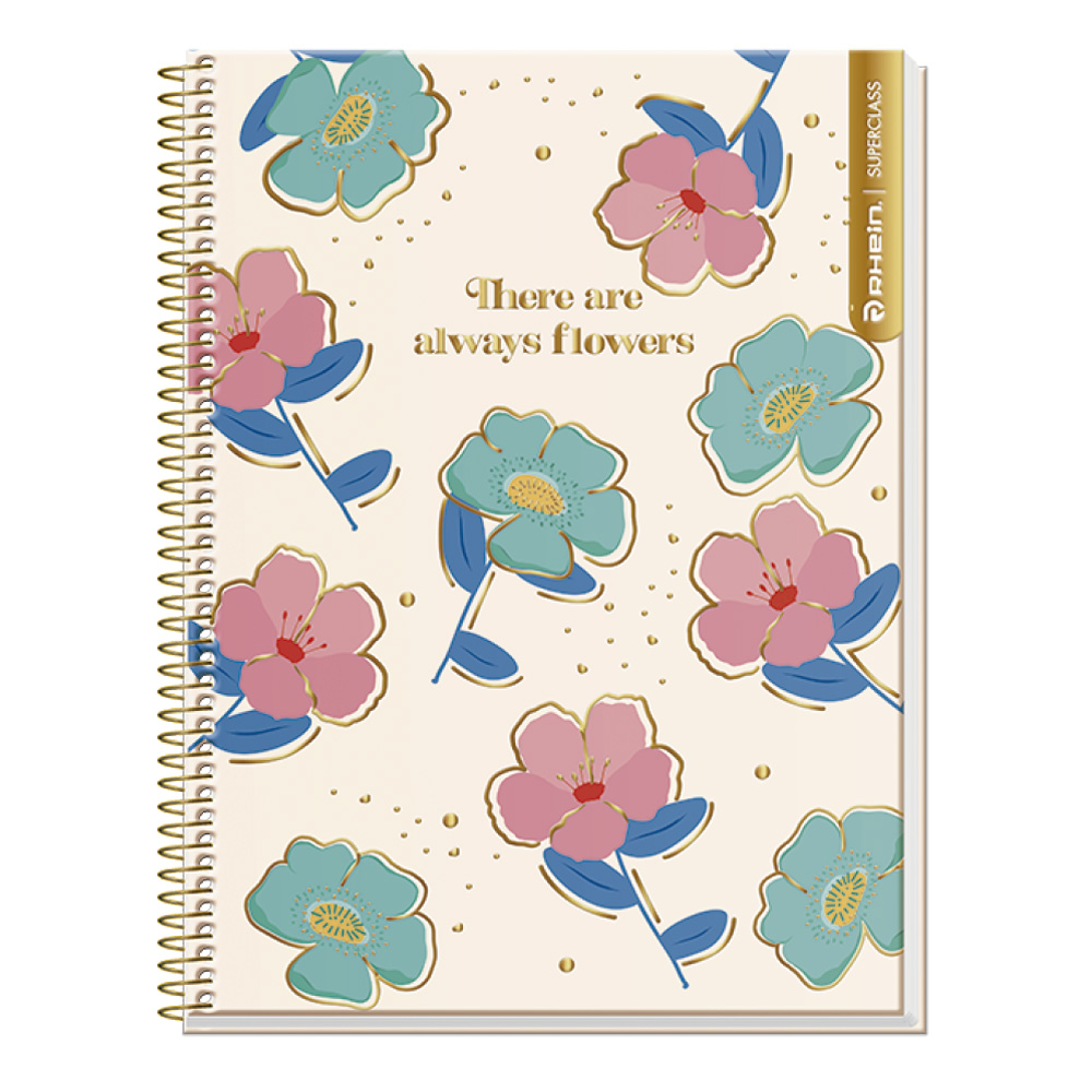 CUADERNO RHEIN SUPER CLASS CARTA FLOWERS 120 HOJAS PUNTOS 7MM