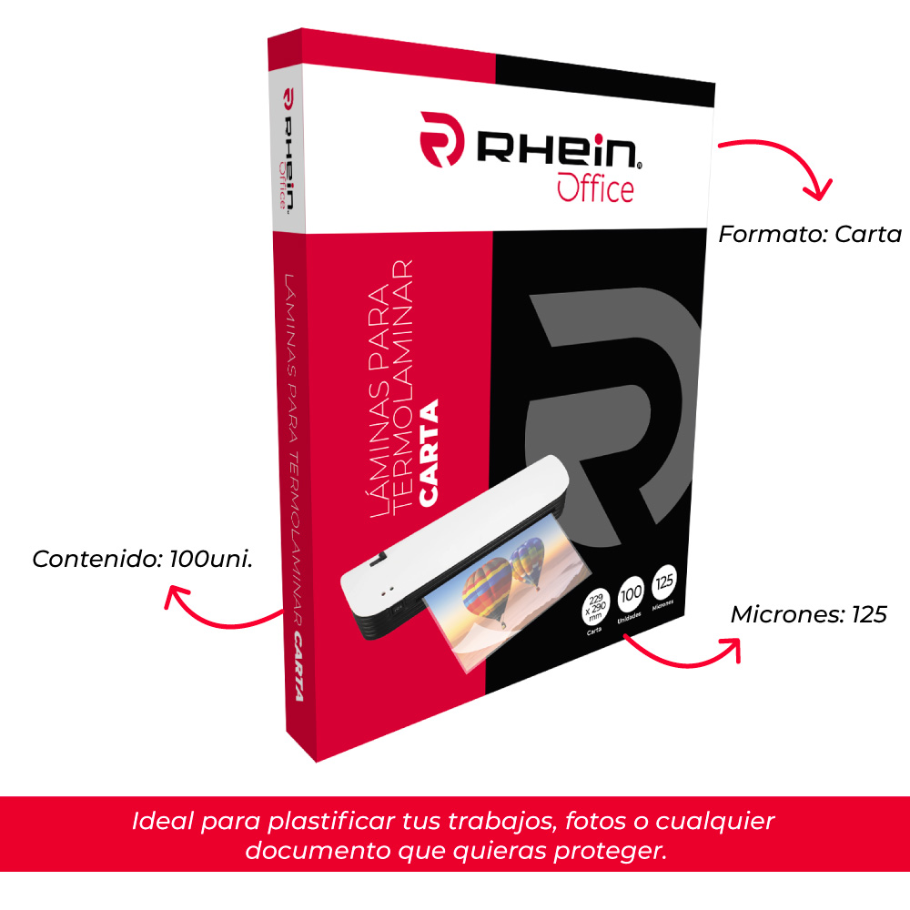 • LAMINA TERMOLAMINAR 229X290MM CARTA 100 UNIDADES 175 MICRONES